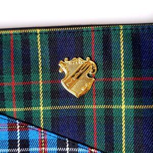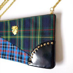 MAC COSMETICS Tartan Evening Bag w/ Gold tone Accents Logo Crest & Chain Strap