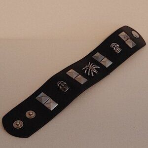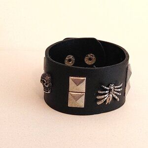 MACABE CUFF BRACELET Costume Jewelry 1.5" Pleather Studs Skulls Spider