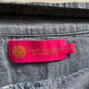 MACBETH Collection Chambray All Day Floral Embroidered Blue Off Shoulder Cotton Denim Top Sz XS