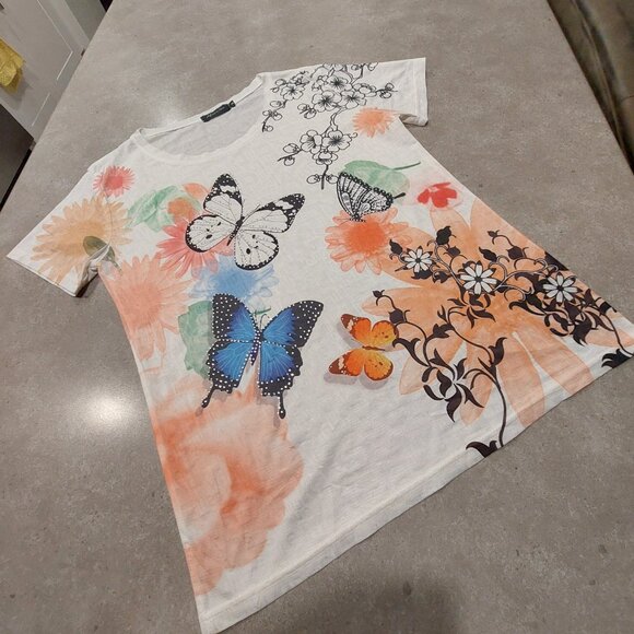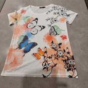 MACCINE Women's Floral/Butterfly/Rhinestones Short Sleeves Tee - SML