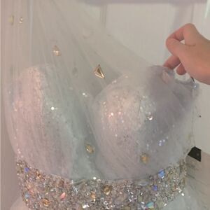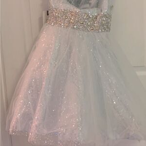 This dress is so pretty. the ice Blue and Silver shimmer color are beautiful.