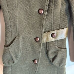 MACKAGE Sx XS Coat Oversized Military Vibes Rounded Hem Wool Blend Lined Leather Trimmed. Statement buttons. Made in Canada. Statement piece that has military vibes but it is feminine and fierce at the same time. Classic trend.