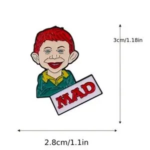 Colorful enamel pin featuring a cartoon character with red hair. The word 'MAD' is prominently displayed. Perfect for fans and collectors.