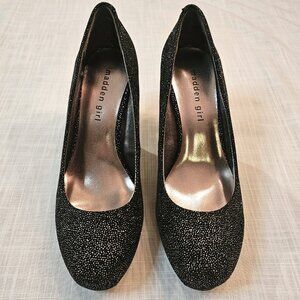 MADDEN GIRL Black Sparkly Gettaw Hidden Platform 4" Heel Pumps Size 7.5