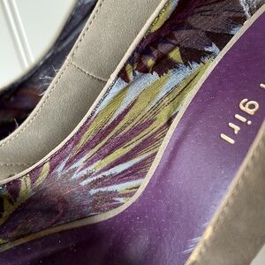 GUC: stain underneath the shoe on bottom. See photos. Some wear spots on insole at heel. Not visible when wearing.