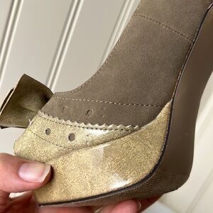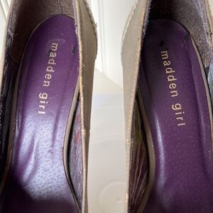 MADDEN GIRL Limmeric Tan Gold Big Bow Peep Toe Platform Heels Shoes 7.5