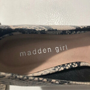 MADDEN GIRL Sz 9 Bueno Snake Print Block Heel Almond Toe Faux Leather Pumps Shoes. Sexy yet classy. Dress up or down. Very comfortable too
