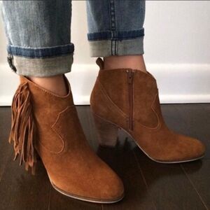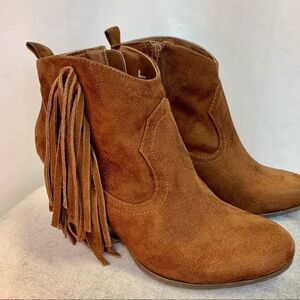 Madden Girl camel Brown Ponch Fringe Ankle Boot size 9