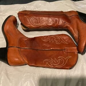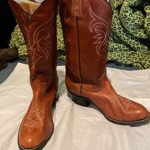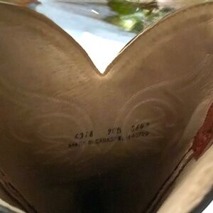 ‘’ MADE IN CANADA ‘’ GENTLY USED UNISEX COWBOY BOOTS LEATHER .. . INFO ON INSIDE OF BOOT IN PICTURES .. TOOLING IS PERFECT ON BOOTS , TABS ARE THERE , Showing size in pictures . sizing shown in pictures with tape measure .. 10 inches long ... 4 inches wide at front.. .. ANY QUESTIONS CONTACT SELLER Not worn packed away