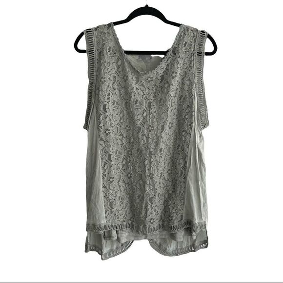 MADE IN ITALY Cotton Blend Sleeveless Blouse Tank Top With Lace Split Back
