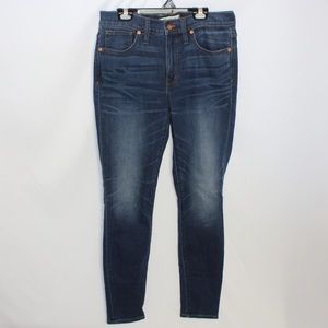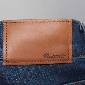 Dark wash Madewell 9" high rise skinny jeans in like new condition (just look at that patch on the back!)! They have a 9" rise and a 27" inseam!