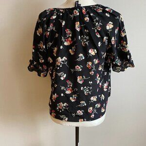 MADEWELL BNWOT Black Floral Vneck Ruffle Short Sleeve Top Sz XSmall Silk