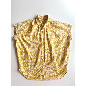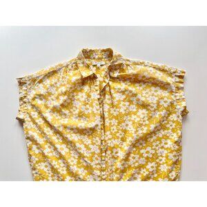 MADEWELL Central Retro Yellow Floral Cotton Poplin Oversized Shirt, Size XS