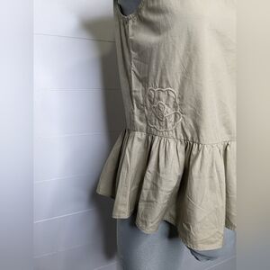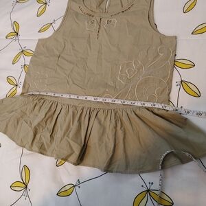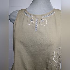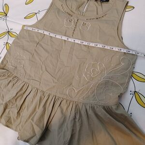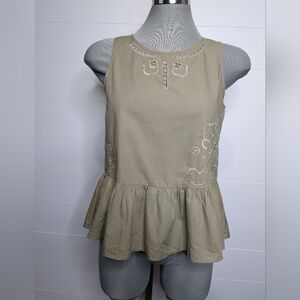 beige peplum style sleeveless top with floral embroidery. In excellent condition. b37