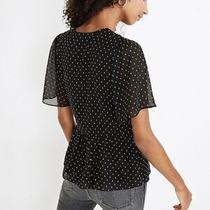 MADEWELL Flutter-Sleeve Peplum Top CLIPDOT blouse Sz MEDIUM Silky soft ROMANTIC