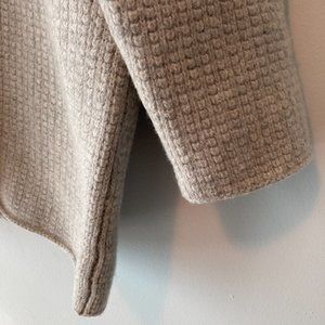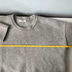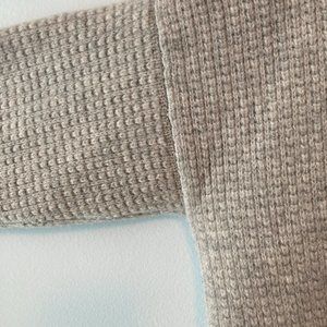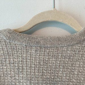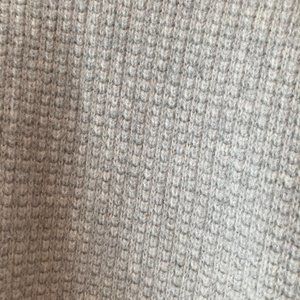 Cropped shape with 3/4 length sleeves. Waffle stitch. Slightly oversized fit.