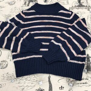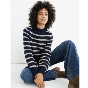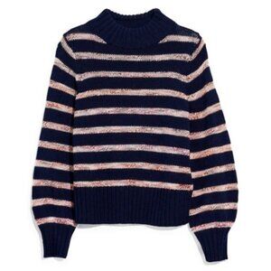 This classic-cool nautical sweater has a chunky mock neck and rainbow-infused stripes that remind us of yummy confetti birthday cake. How sweet is that?