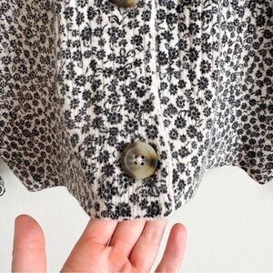 this floral-patterned ribbed cardigan sweater is boxy and slightly cropped. Wear it as a top under overalls or layer it over a dress.