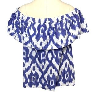 MADEWELL White Blue Southwestern Off Shoulder Top Coastal Pullover Blouse Sz M