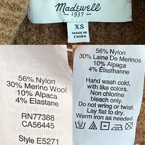 MADEWELL Wool Waffle Thermal Turtleneck Mock Neck Sweater Brown XS