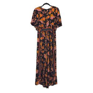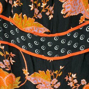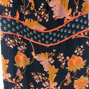 Maeve Anthropologie Belted Botanical Floral Jumpsuit Black Orange β Sash Belt, Flutter Sleeves