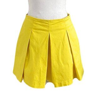 MAEVE BY ANTHROPOLOGIE PETITE COLLECTION YELLOW PLEATED MINI SKORT - SIZE 2P, This is a cute, preppy but casual, bright yellow, pleated tennis/golf mini skort (skort), made from cotton with a side zip and button closure - welt pocket details at the back (no usable) pleated in the front like a skater skirt but with the comfort and movement of shorts for the best of both worlds - Summer favorite with a tank top, striped polo or cropped tee.