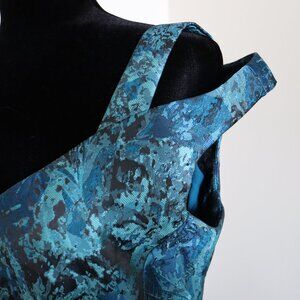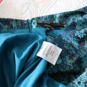 Absolutely stunning dress, fabric and colours are a show stopper, fully lined, interior straps with signature branding. side pockets , hidden zipper PTP 18.5, waist 15.5