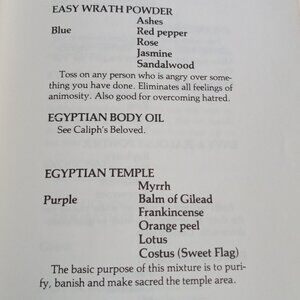 Contents include Ritual Ingredients, Talismans. Incense, Baths and more.