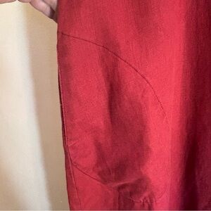 MAIWA Sz M Square Neck Contrasting Red Sleeveless Dress A-Line Buttons Back. This elegant red sleeveless dress is perfect for any occasion. Its simple yet stylish design makes it a versatile addition to your wardrobe. Colourful piece that makes a statement. Take on your next vacation or cruise or run errands while staying fresh and looking gorgeous. Art to wear. Lagenlook. Bohemian.