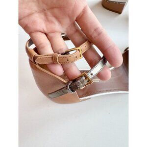 Strap across vamp w/ skinny gold strap
