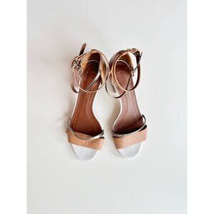 MAIYET Tan White Gold Colorblock Studded Stacked Block Heel Sandals, Size 39