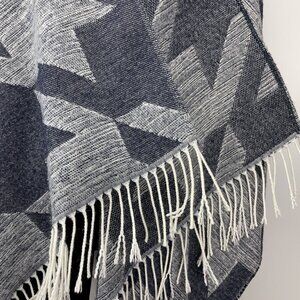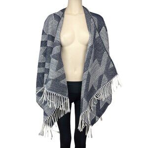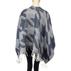 MAJE Boho Fringed Cape Western Poncho Stars Print Indigo Blue White OS
