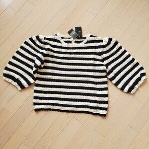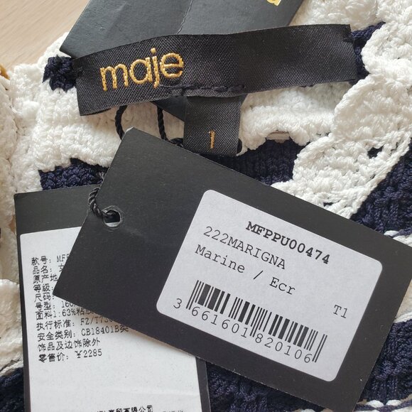 MAJE ! Marigna Marine/Ecru Striped Crochet-Knit Top. (Small)