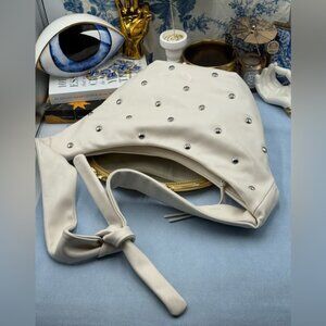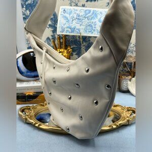 🆕 MAJE 🧿 NWOT Knotted Silver Studded White Leather Shoulder Crossbody Bag