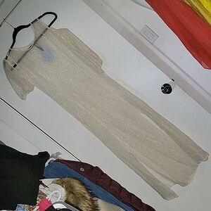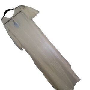 • Off-white (ecru) color enhances the ethereal and delicate appearance of the dress, accented by the shimmering metallic detailing for a touch of elegance.