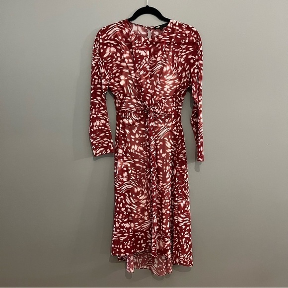 MAJE Rivole White & Burgundy Printed Georgette Twist Front High-lo Sheer Dress