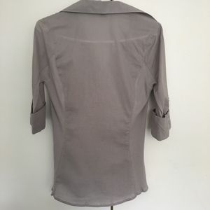MAJORA Gray 3/4 Sleeve Button Down Shirt Blouse