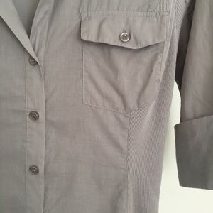 MAJORA 3/4 Sleeve Gray Shirt Button Down Blouse With Pockets Size S