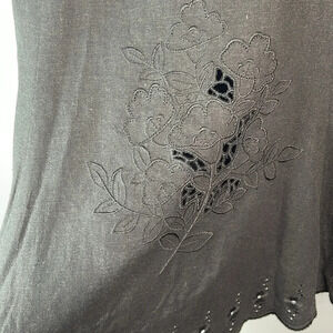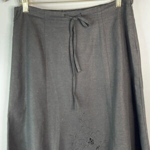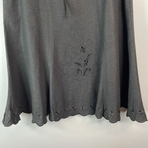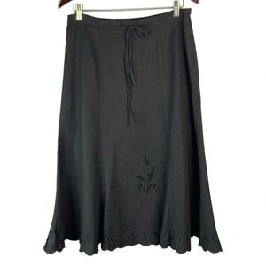MALCOLM & CO Linen Blend Midi Skirt Black Floral Eyelet Scallop Edge Coastal 8