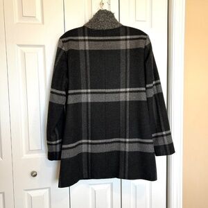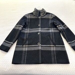 MALLIA Wool/Cashmere Pea Coat Grey Large Plaid Funnel Neck Size14 MadeInCanada