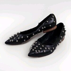 MA&LO Leather Studded Beaded Ballet 38 US 8 Black Flats Pointed Toe Embellished