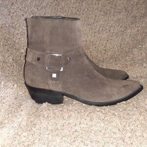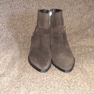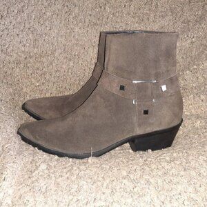 MA&LO-Italy-Laiss-Dark Brown Suede Ankle Booties-Side Zip-Studs-Sz 9-Near Mint