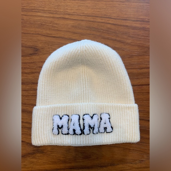 Cozy cream beanie hat perfect for mamas! Stylish and warm for any outing.