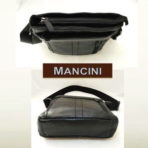 MANCINI Unisex Black Leather Vertical Messenger Bag Padded Shoulder Crossbody