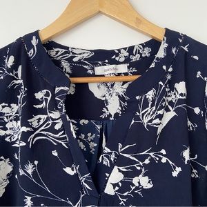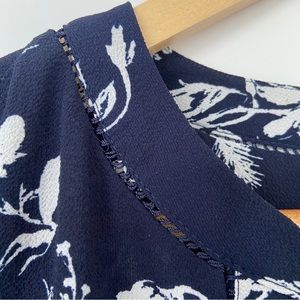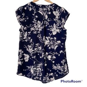 MANDEE NAVY/WHITE FLORAL VNECK TOP/BLOUSE WITH TULIP CAP SLEEVES,MEDIUM