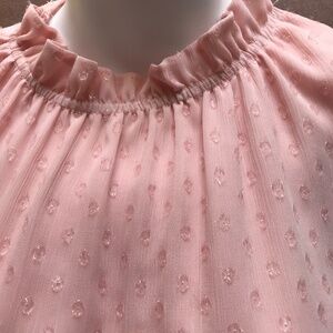 Soft pink sleeves blouse with dainty detailing. Back of the top has a slit in the outer layer. Perfect for a night out! Size medium.