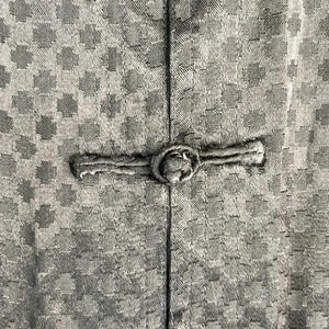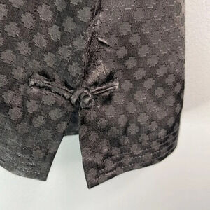 MANDERIN Style Silk Pattern Blouse Black Short Sleeve Toggle Knot Closure M