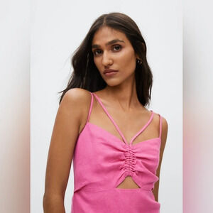 MANGO 100% Linen Elegant Pink Strappy Dress