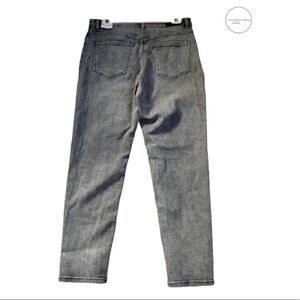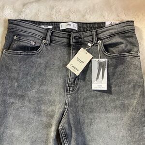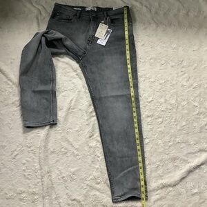 Denim style cotton fabric. Sustainable cotton. Slim fit. High waist. Five pockets. Loops. Zip and one button fastening.