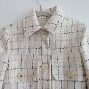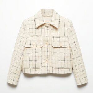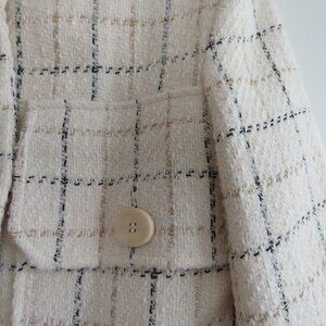 MANGO MNG Cropped Tweed Blazer in Cream Plaid Preppy Old Money Academia Size XS